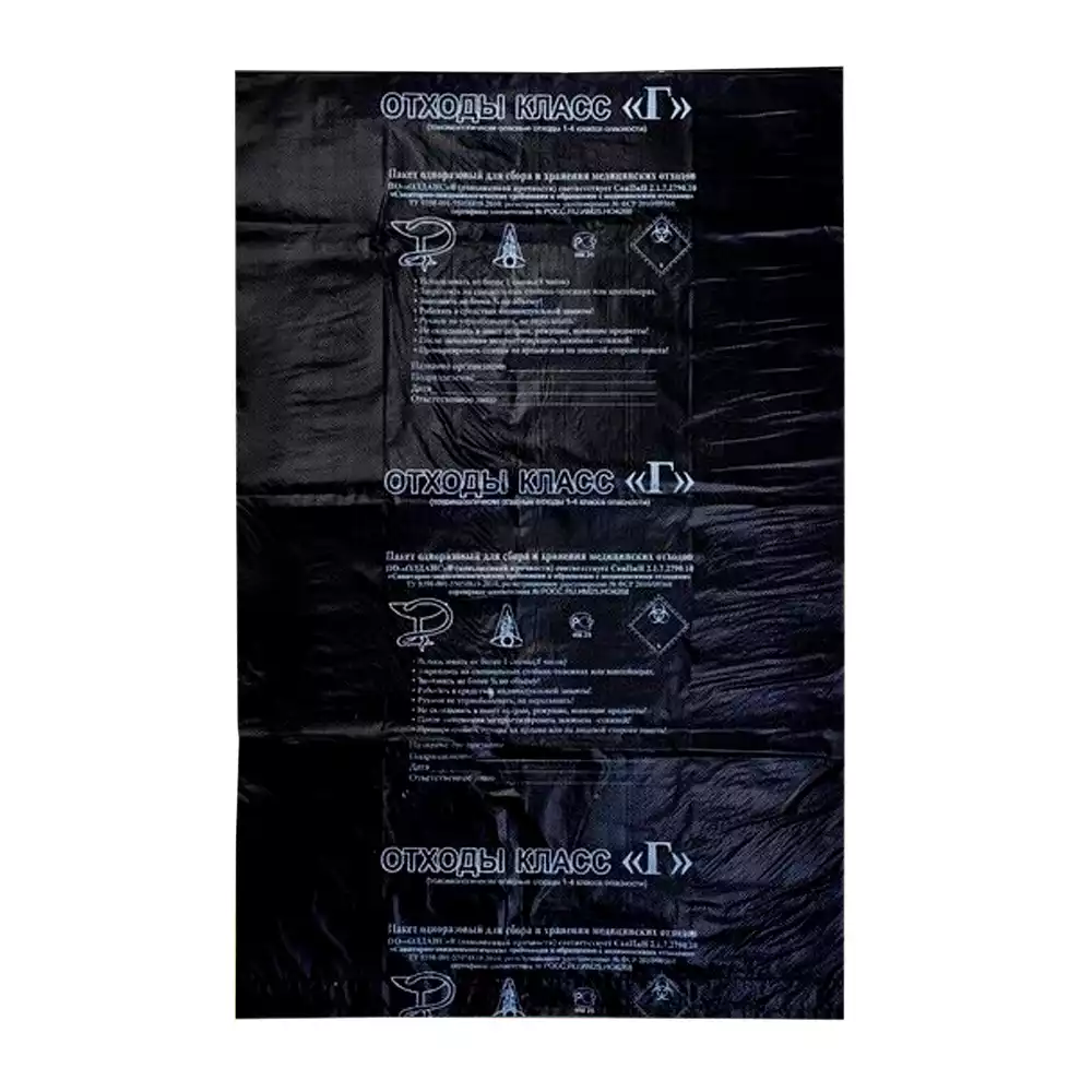 Пакет для сбора медицинских отходов, класс Б, размер 300х330мм, плотность 13мкм, объем 5-7л, Уралпак (РОССИЯ)