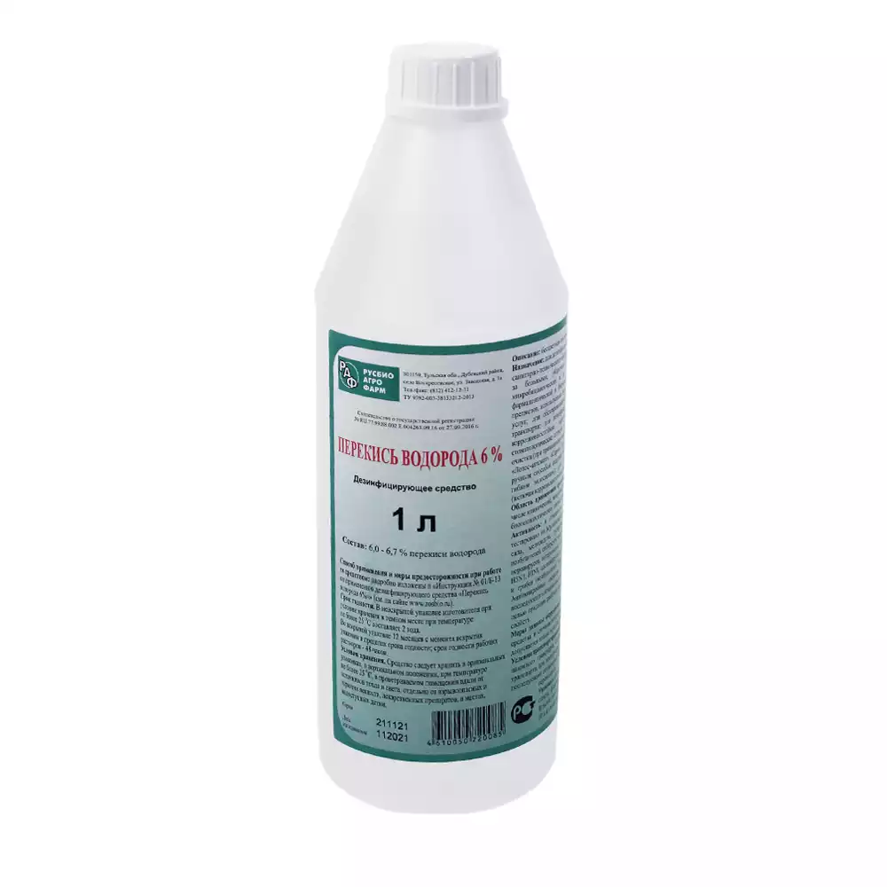 Перекись водорода 6% раствор, объем 1,0л, для наружного применения, РусбиоАгроФарм