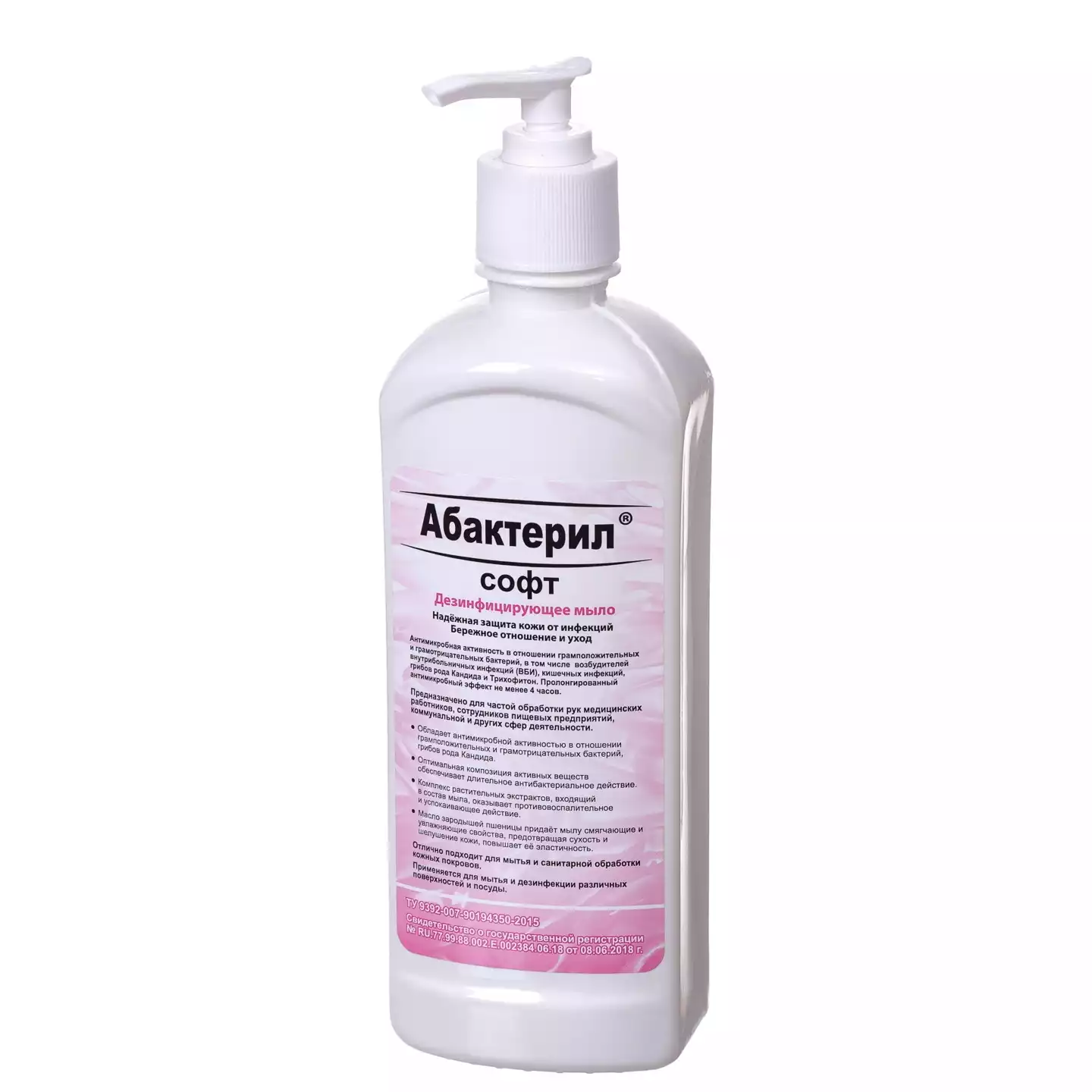Абактерил - СОФТ 0,5л, жидкое дезинфицирующее мыло (твердый флакон с насос-дозатором), Рудез (РОССИЯ)
