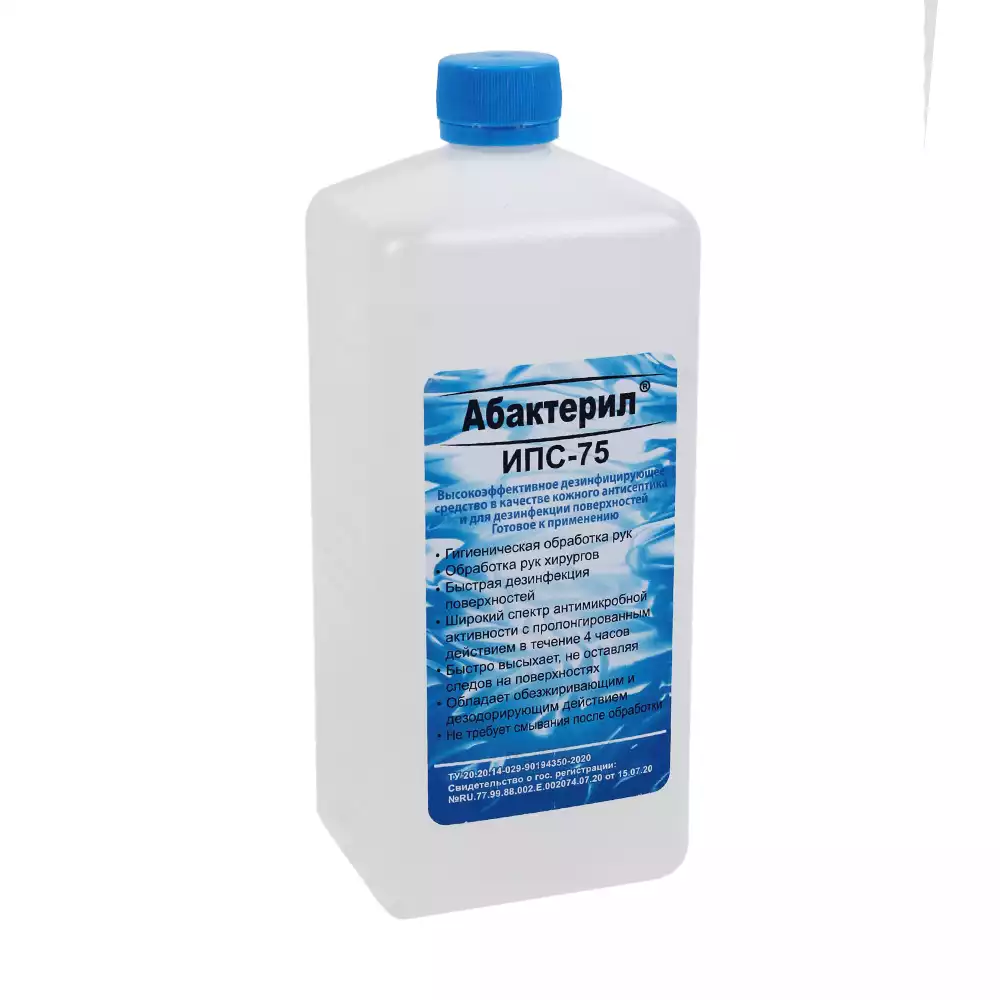 Абактерил - ИПС-75 1,0л, кожный антисептик и дезинфектант для поверхностей, изопропиловый спирт – 75% (готовый раствор), Рудез (РОССИЯ)
