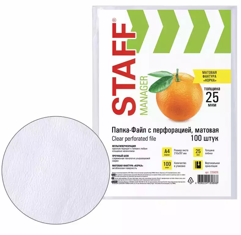 Папки-файлы перфорированные А4 STAFF "ЭКОНОМ", КОМПЛЕКТ 100 шт., матовые, 25 мкм, BRAUBERG