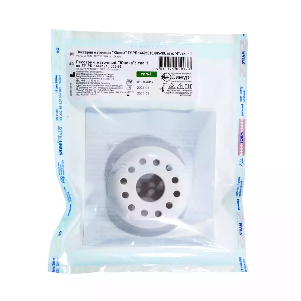 Пессарий маточный "Юнона", тип 1, наружный диаметр 63 ±2,5см, Симург Медицинское предприятие (БЕЛАРУСЬ)