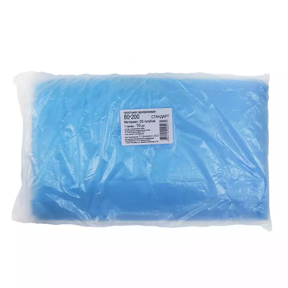 Простыня 80*200см, материал Спанбонд 20г/м2, нестерильная, голубая, групповое сложение, Белая река (РОССИЯ)