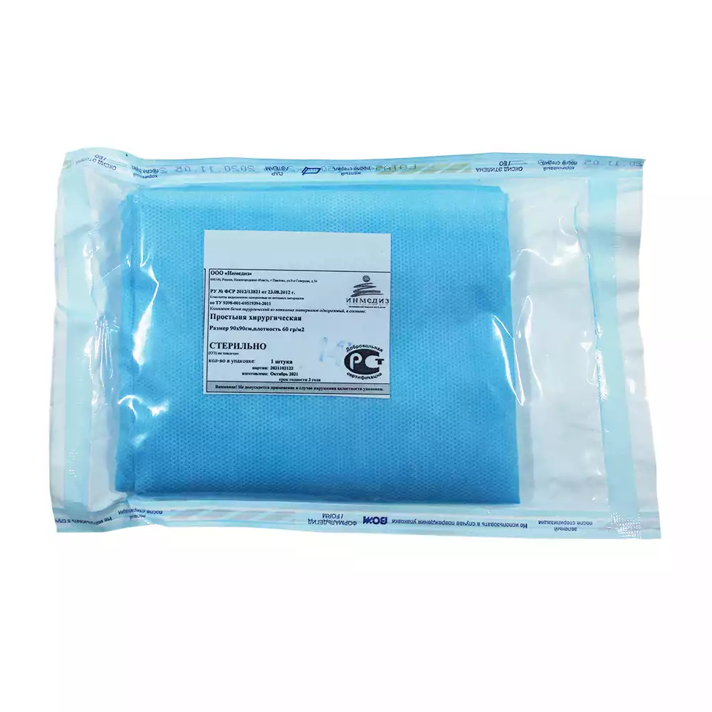 Простыня 70*80см, материал Спанбонд 20г/м2, нестерильная, цвет голубой, с РУ, Волга Медикал НПП (РОССИЯ)