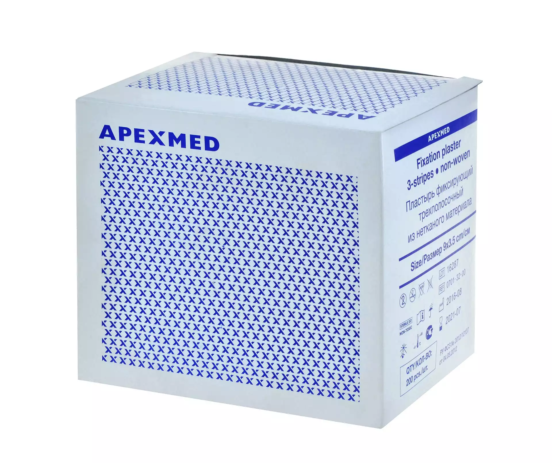 Пластырь для игл, нетканный, размер 9см*3,5см, трехполосочный, упаковка 200шт, Apexmed International (КИТАЙ)