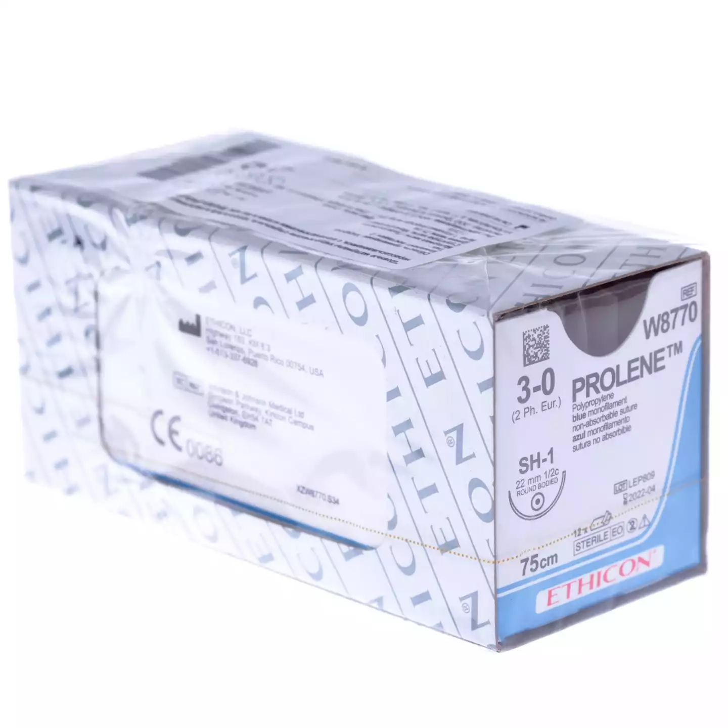 Пролен 3/0, длина 75см, колющая SH-1 1/2 окружности 22 мм, синий, упаковка 12шт, W8770, ETHICON (БЕЛЬГИЯ)